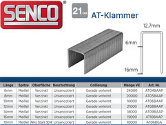 Unsere SENCO Klammer AT ist eine Dünndrahtklammern für einfache Anwendungen. Typische Anwendungszwecke sind Polsterarbeiten, das Befestigen von Stoffen und Leder, die Schuhindustrie, Möbel und Spielzeug sowie Blisterverpackungen.